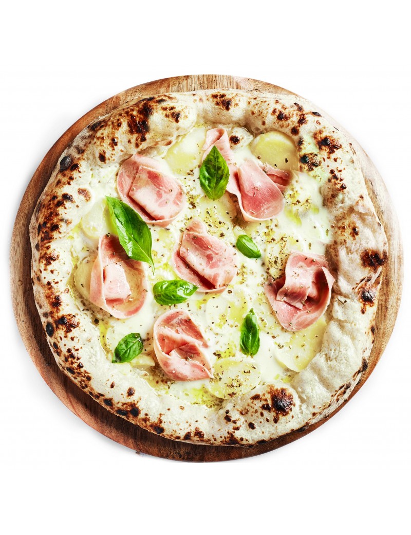 Crème fraîche, mozzarella, jambon de dinde, pomme de terre et raclette