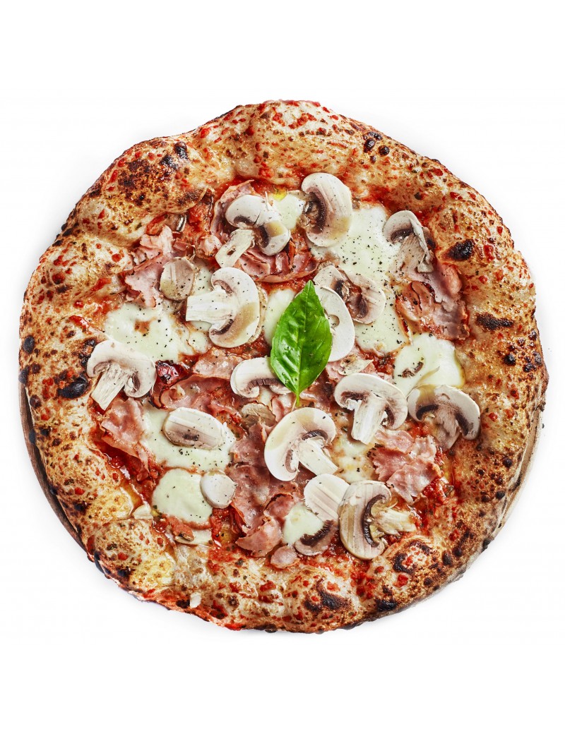 Sauce tomate, mozza, jambon de dinde et champignons frais